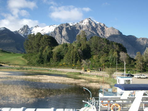 | ”アンデス山脈を,船で越えて行く旅!”, この興味をそそるキャッチフレーズに迷わずに乗った。 船に3回,バスに4回乗り継いで,アンデス山脈を横断。 アルゼンチンのバリローチェから,太平洋側,チリの港町プエルトモン迄 約200kmの距離を,一日がかりで行く旅だ。 迫るアンデスの山々の合い間に点在する,幾つかの湖と峡谷,それらを結ぶ狭い 山道。それらがうまくつながり,アンデスと国境を越えて行く。 コースのすべてで,湖,渓谷美,山々の素晴らしい景色が堪能でき, 飽きる事のない国境越えだ。 |