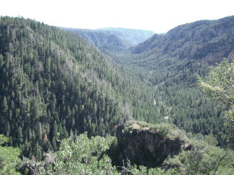 道はすぐに,Oak Creekの流れにそって深い林の中を縫って登ってゆく。"Scenic Road" (良い景色の道)に指定されているこの道,アリゾナでは珍しい山間道路だ。 |